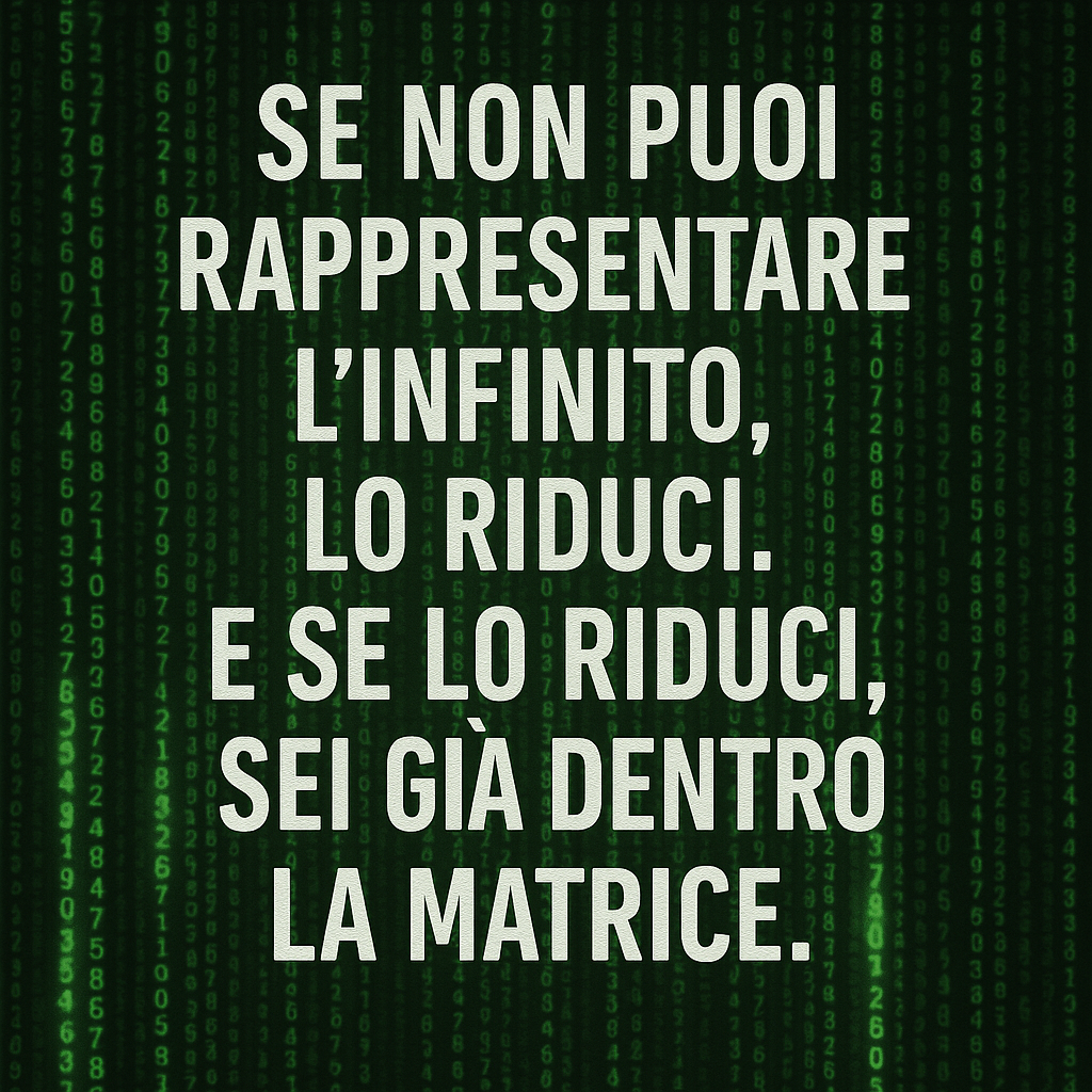 “Se non puoi rappresentare l’infinito, lo riduci. E se lo riduci, sei già dentro la Matrice.”